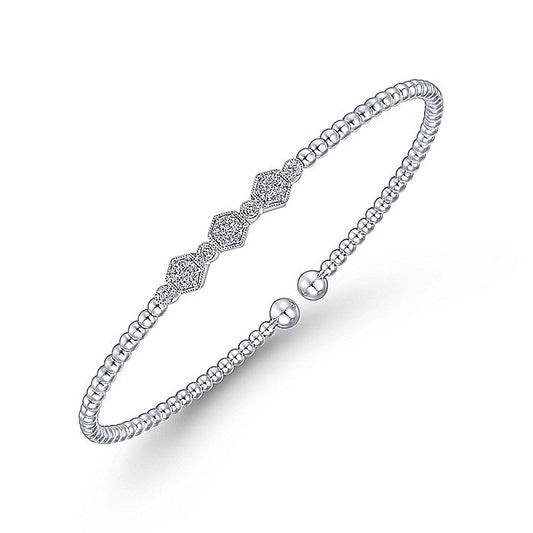Gabriel & Co White Gold Bujukan Bead Cuff Bracelet With Cluster Diamond Hexagon Stations