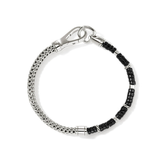 John Hardy Sterling Silver Black Onyx Heishi Chain Bracelet