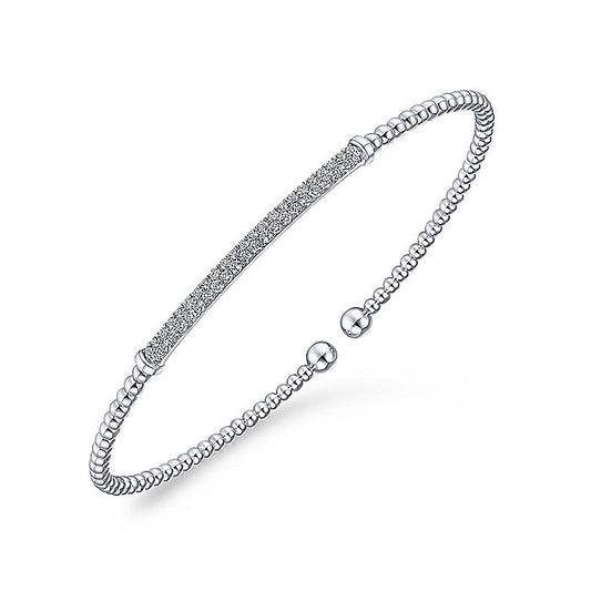 Gabriel & Co. 14 Karat White Gold Bujukan Split Cuff Bracelet with Diamond Pavé Bar
