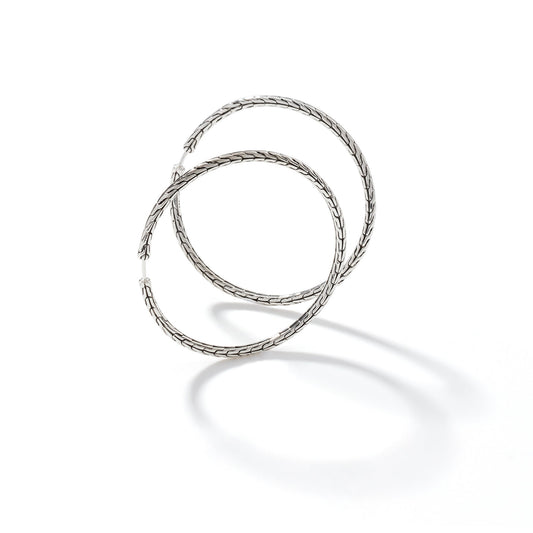 John Hardy Sterling Silver Carved Chain Hoop Earrings