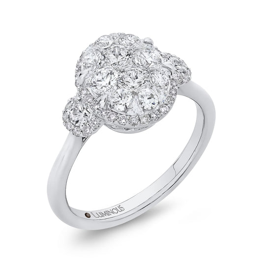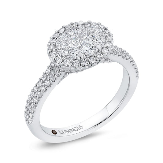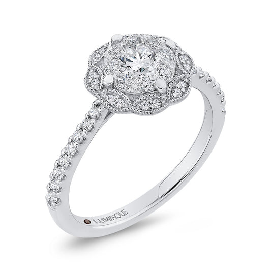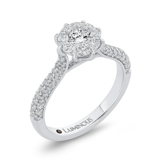 Luminous White Gold Round Floral Halo Engagement Ring