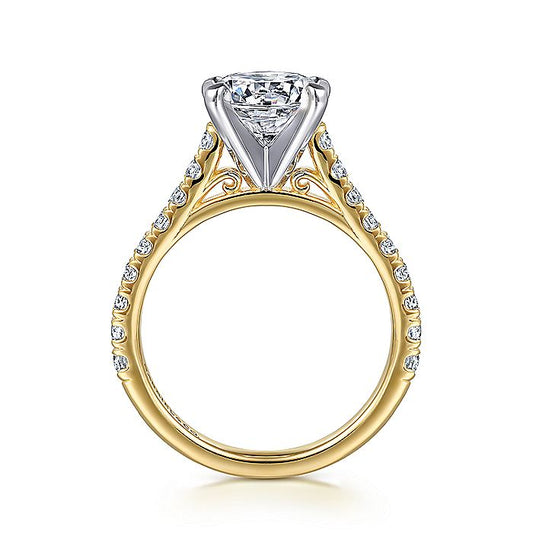Gabriel & Co. 14 Karat White and Yellow Gold Round Semi-Mount Engagement Ring