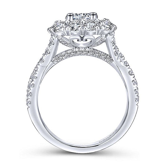 Gabriel & Co White Gold Pear Shaped Halo Semi-Mount Engagement Ring