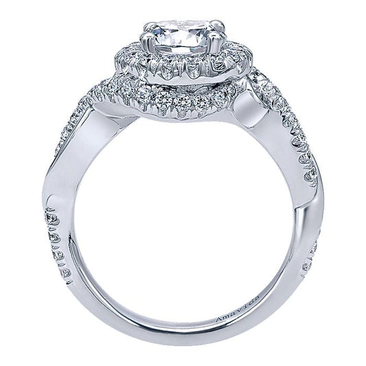 Amavida White Gold Swirl Round Halo Engagement Ring