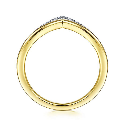 Ladies Gabriel & Co Yellow And White Gold Curved Double Row Diamond V Ring