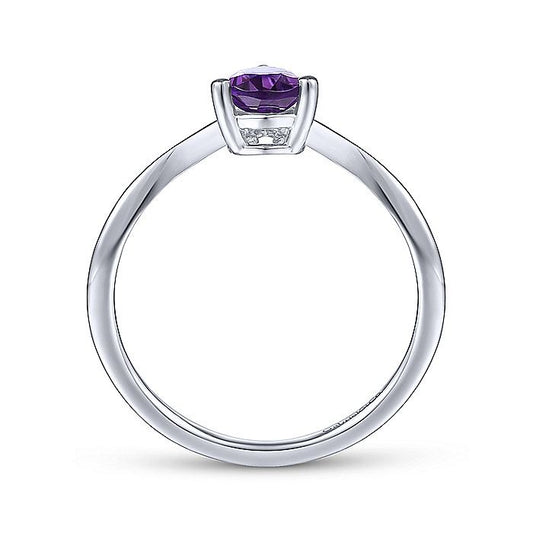Gabriel & Co. White Gold Teardrop Amethyst and Diamond Triangle Ring