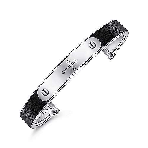 Gabriel & Co Sterling Silver and Leather Open Cross ID Bracelet