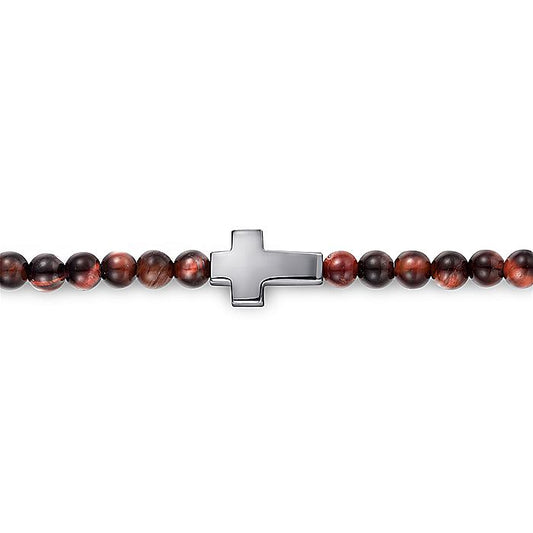 Gabriel & Co Sterling Silver Brownish Red Tiger Eye Cross Bracelet