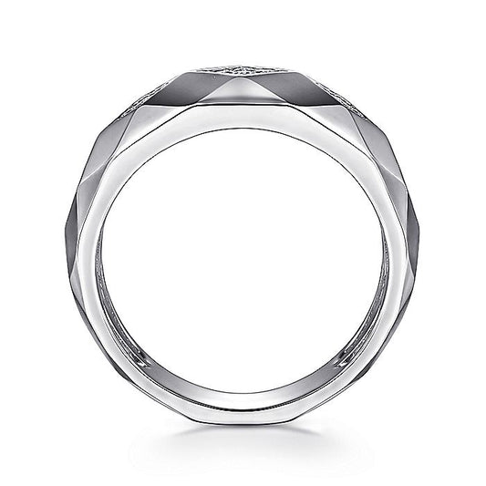 Gabriel & Co. Sterling Silver Wide Faceted Signet Ring