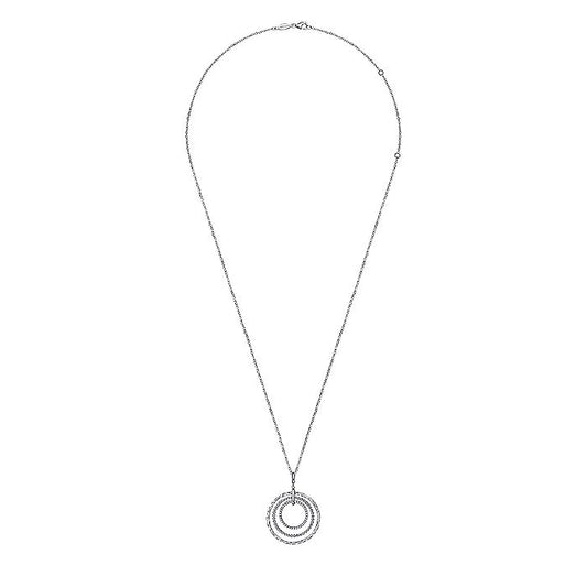Gabriel & Co Sterling Silver Triple Row Circle Pendant Necklace with White Sapphires