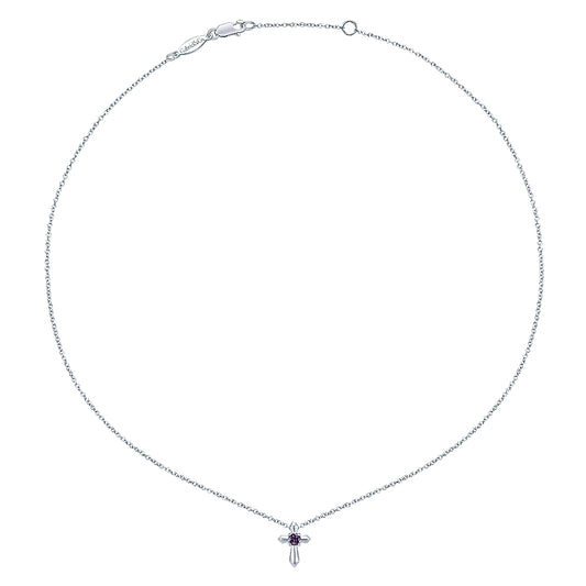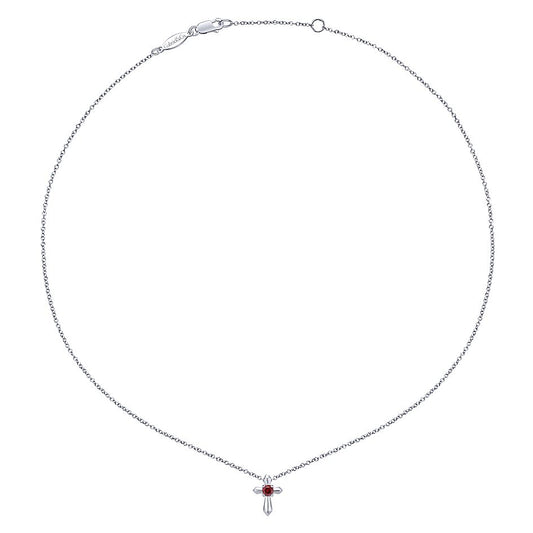 Gabriel & Co Sterling Silver Round Ruby Cross Necklace
