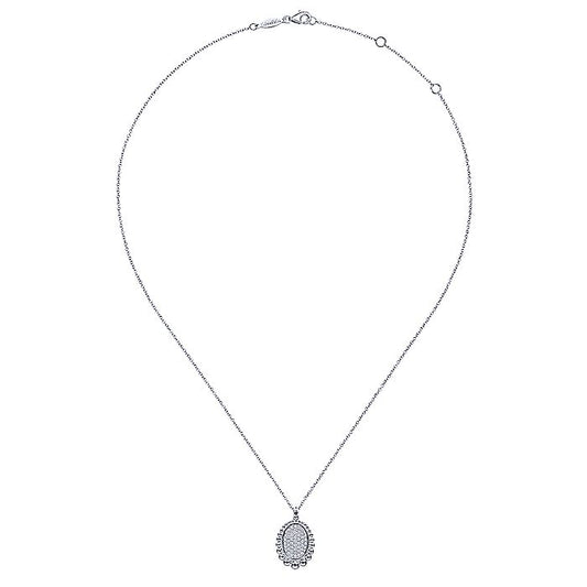 Gabriel & Co Sterling Silver White Sapphire Pavé Center and Bujukan Bead Frame Pendant Necklace
