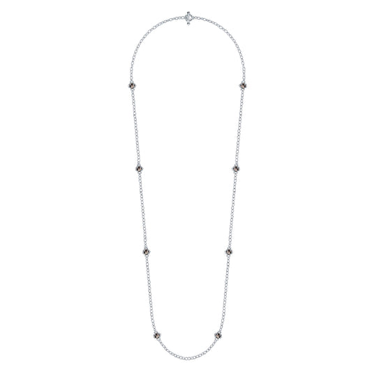 Gabriel & Co Sterling Silver Station Smokey Quartz Station Necklace