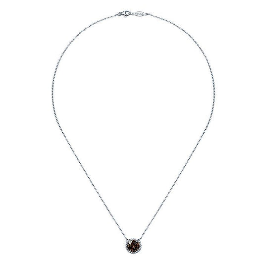 Gabriel & Co Silver Round Smoky Quartz Pendant Necklace