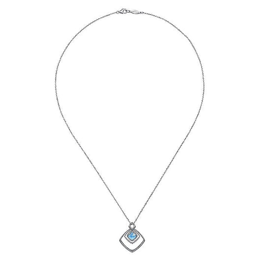 Gabriel & Co Sterling Silver Layered Squares Necklace with Blue Topaz Drop