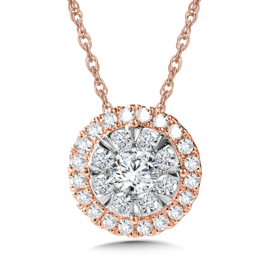Rose and White Gold Diamond Halo Pendant