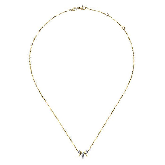 Gabriel & Co Yellow And White Gold Diamond Pave Spike Fan Necklace