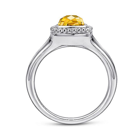 Gabriel & Co Sterling Silver Beaded Cushion Cut Citrine Ring