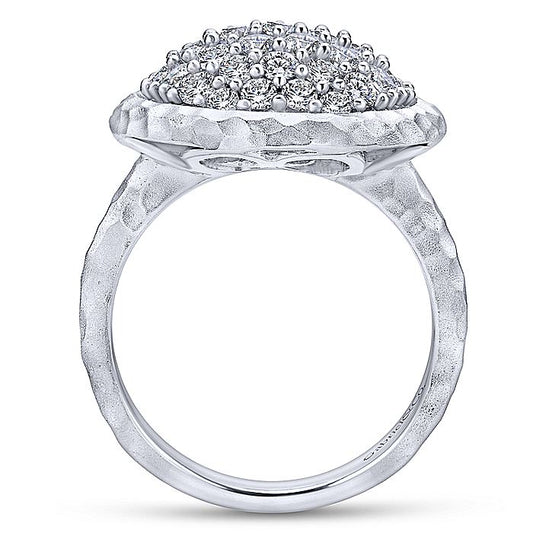 Gabriel & Co Sterling Silver Hammered Horizontal Oval White Sapphire Cluster Ring