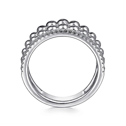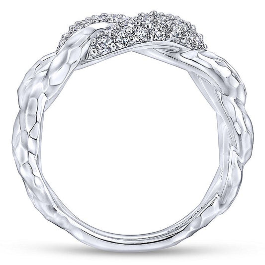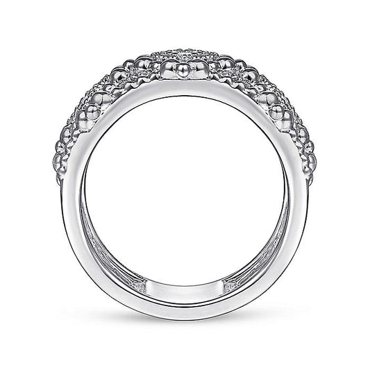 Gabriel & Co Sterling Silver Hammered White Sapphire Wide Ring