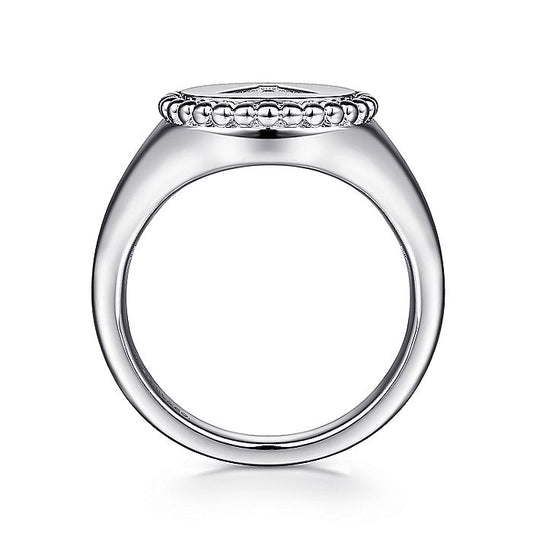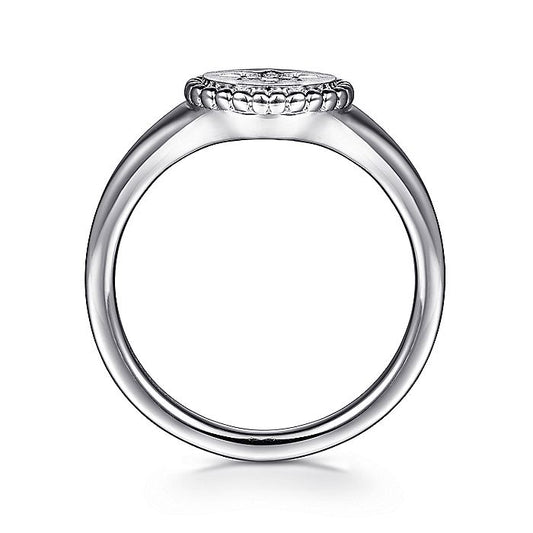 Gabriel & Co. Sterling Silver Signet Ring with Diamond Star