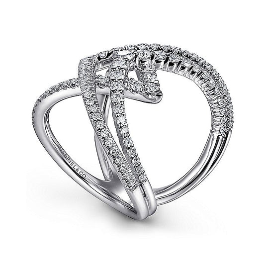 White Gold Cross-Over Diamond Fashion Ring