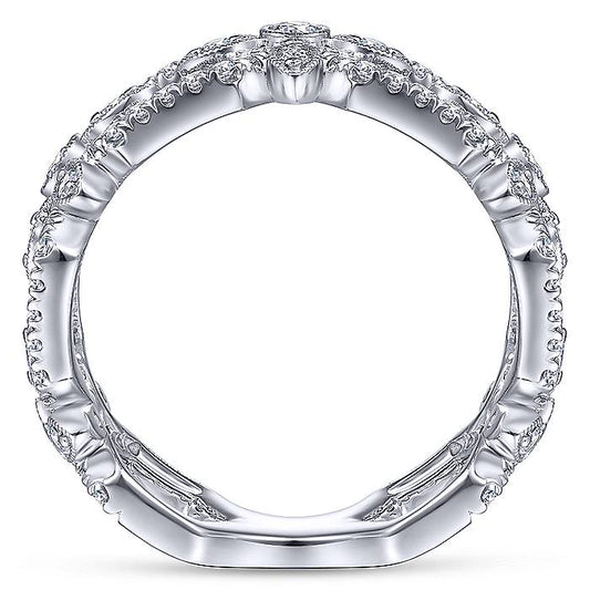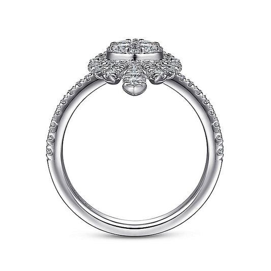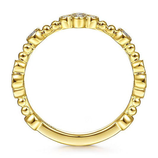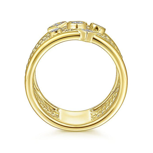 Gabriel & Co Yellow Gold Bezel Set Diamond Quatrefoil Station Ring
