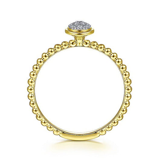Gabriel & Co Yellow Gold Round Bezel Set Diamond Cluster Ring with Bujukan Beaded Shank