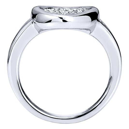Gabriel & Co Silver Oval Signet Ring with White Sapphire Pave