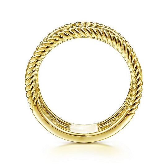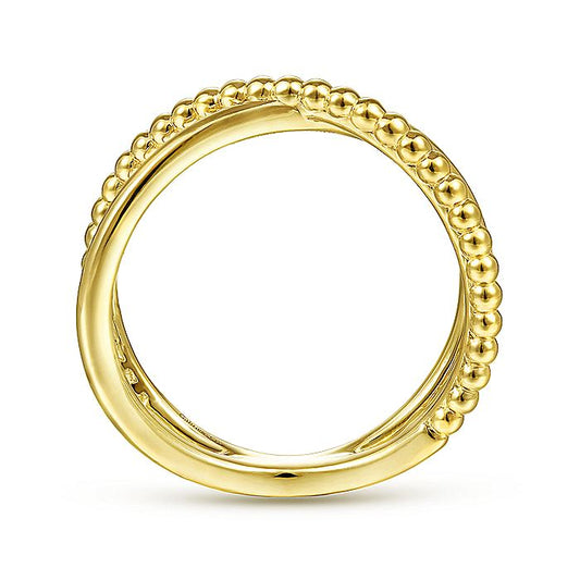 Gabriel & Co Yellow Gold Bujukan Bead Criss Cross Ring