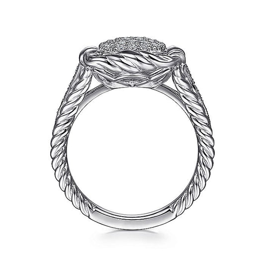 Gabriel & Co Sterling Silver White Sapphire Pavé Twisted Rope Framed Ring