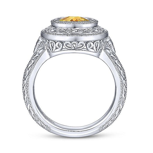 Gabriel & Co Vintage Inspired Sterling Silver Oval Citrine Ring