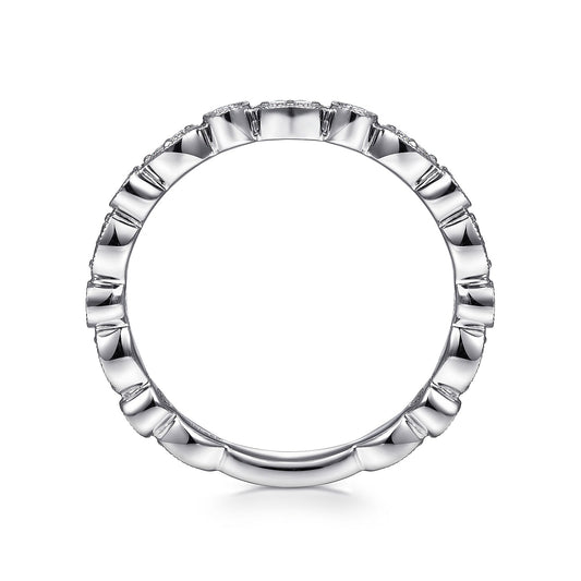 Gabriel & Co. 14 Karat White Gold Curved French Pavé Diamond Wedding Band