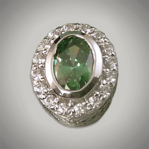 Caerleon Collection Sterling Silver Interchangeable Oval Bezel Insert Featuring A 7x5mm Oval Green Cubic Zirconia With A Halo Of Round White Cubic Zirconia