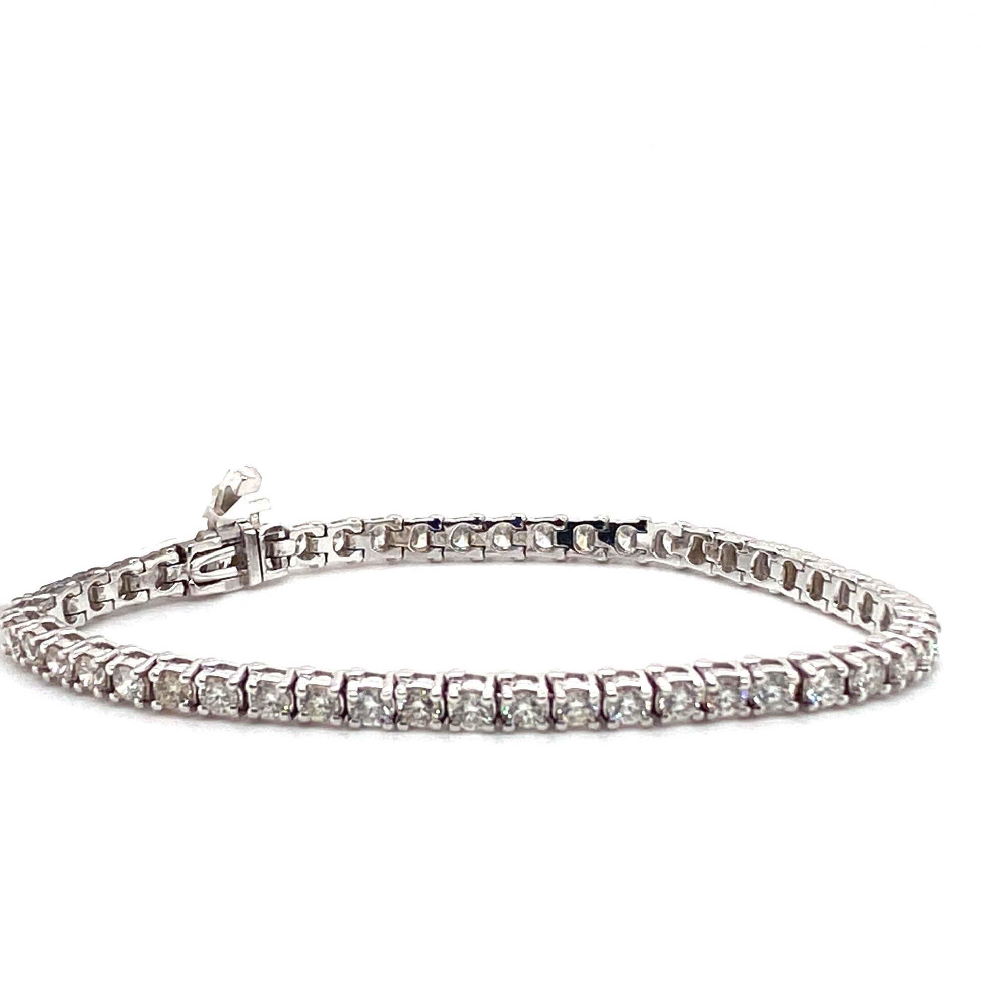 Ladies 14 Karat White Gold 7 Inch Tennis Line Bracelet Containing 0.98 Carat Total Weight Round Brilliant Cut Diamonds; SI Clarity; H-I Color