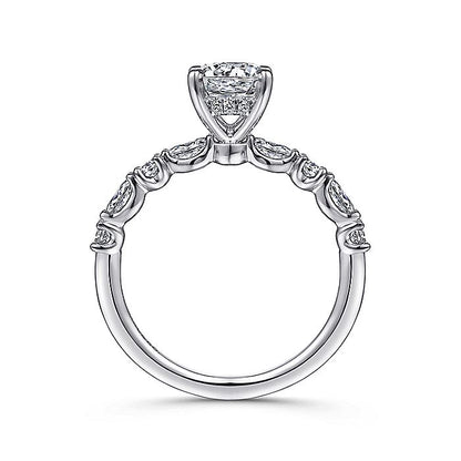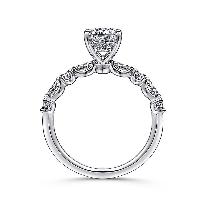 Ladies Gabriel & Co. 14 Karat White Gold Round Semi-Mount Engagement Ring Featuring 0.32 Total Carat Weight of Marquise Diamonds; VS2 Clarity, G-H Color; 0.23 Total Carat Weight of Round Brilliant Diamonds; SI Clarity, G-H Color; Finger Size: 6.5; SerialN