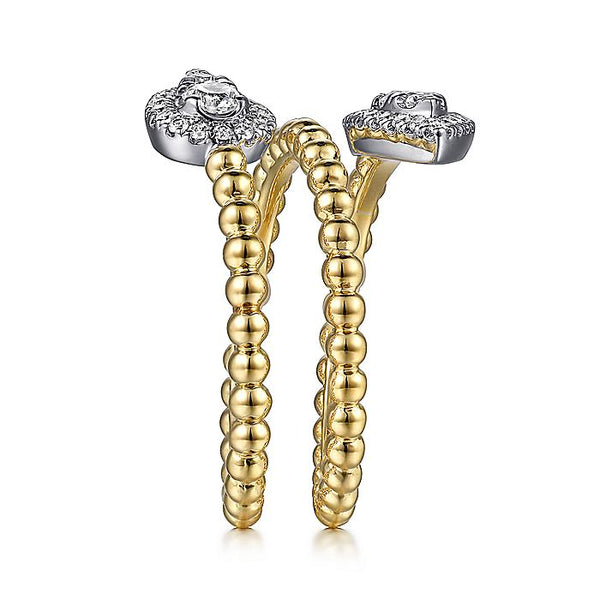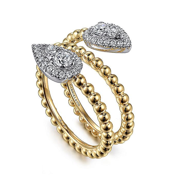Gabriel & Co. 14 Karat Yellow and White Gold Bujukan Wrap Ring with Teardrop Diamonds