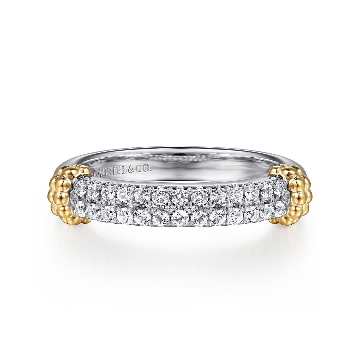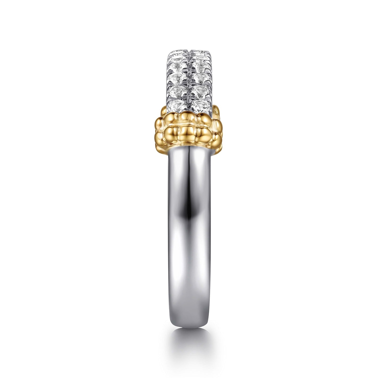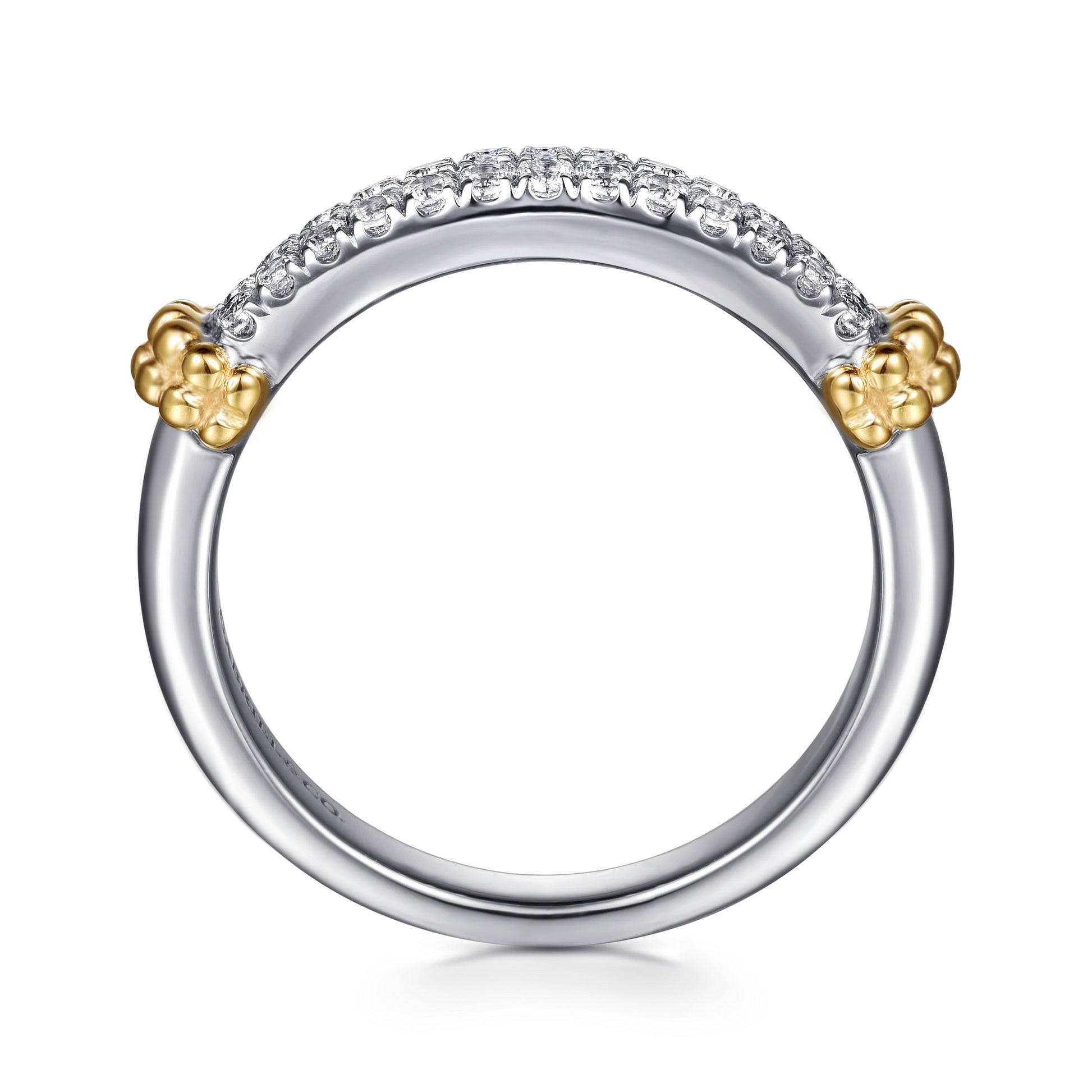 Ladies Gabriel & Co. 14 Karat Yellow Gold and Sterling Silver Bujukan White Sapphire Stackable Ring Featuring 0.33 Total Weight of White Sapphires; Finger Size: 6.5; Serial Number: S2239158