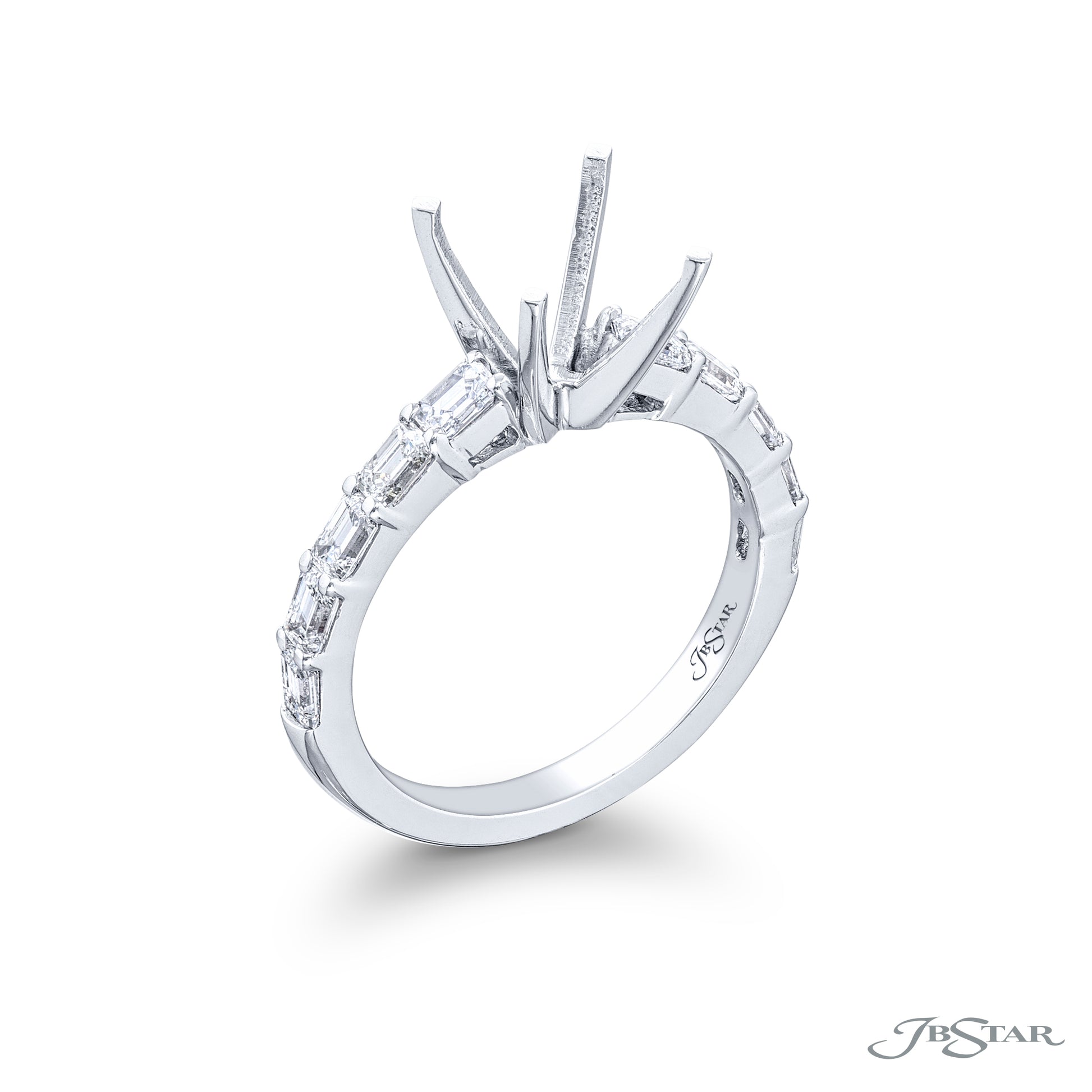 Ladies JB Star Platinum Diamond Semi-Mount Engagement Ring Featuring 1.02 Total Carat Weight of 10 Emerald Cut Diamonds; VS Clarity, F-G Color; Finger Size: 6.5