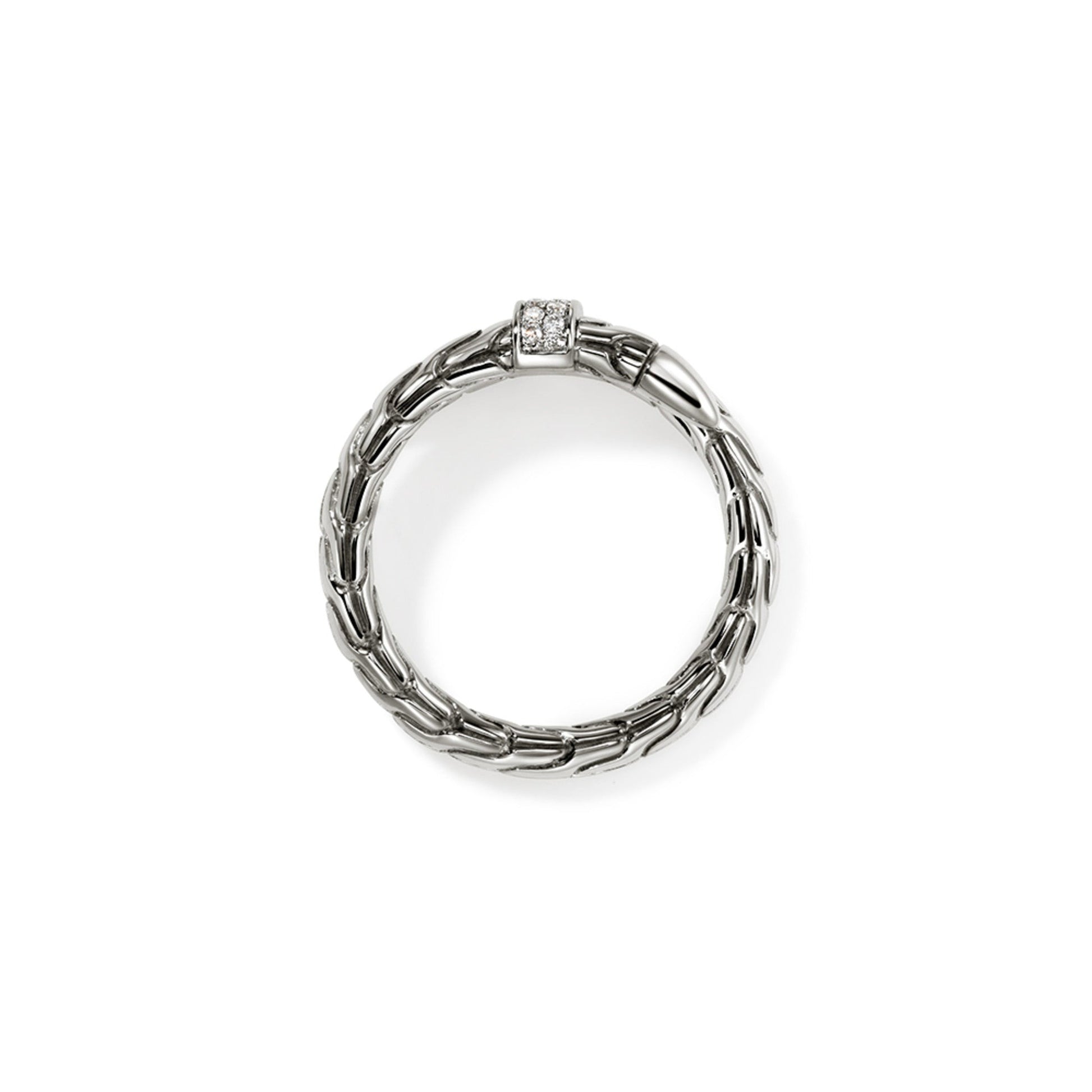 John Hardy Sterling Silver Single Wrap Spear Ring Featuring 0.08 Carat Total Weight Round Brilliant Cut Diamonds