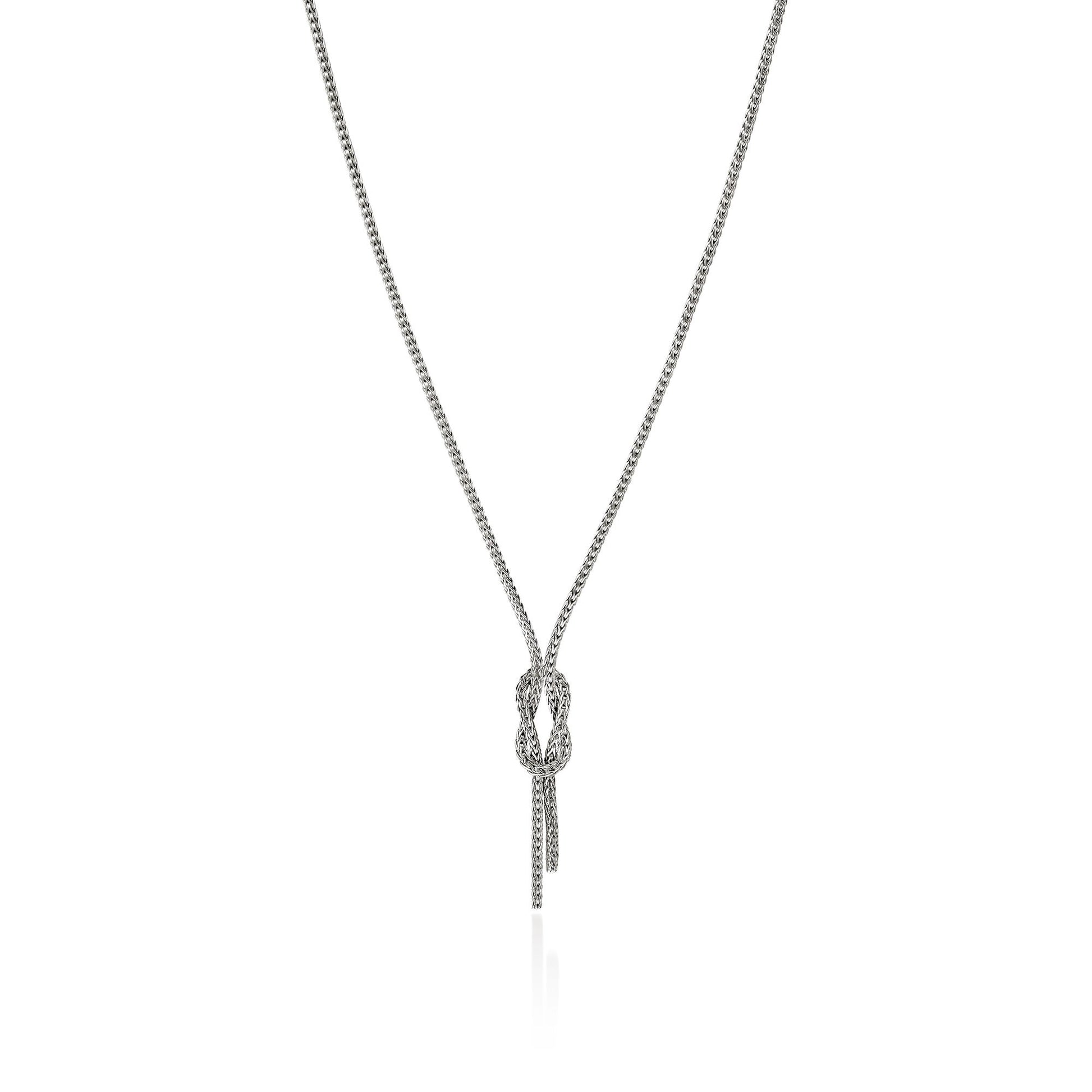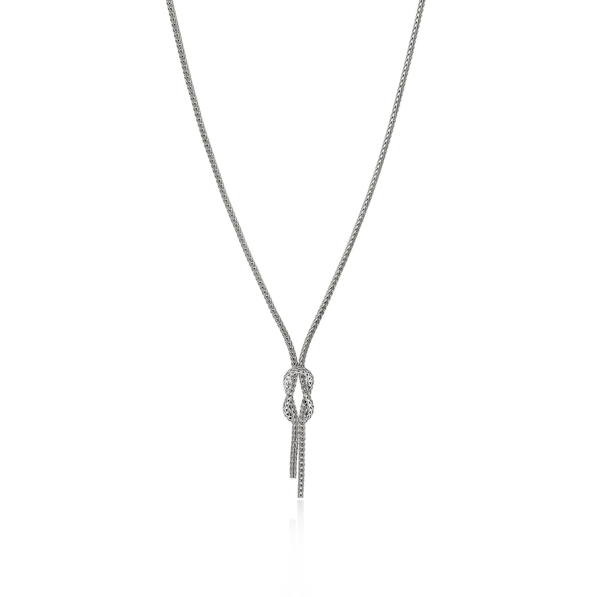 John Hardy Sterling Silver 16-18 Inch Variable Length 1.8mm Woven Woven Chain Love Knot Y Necklace