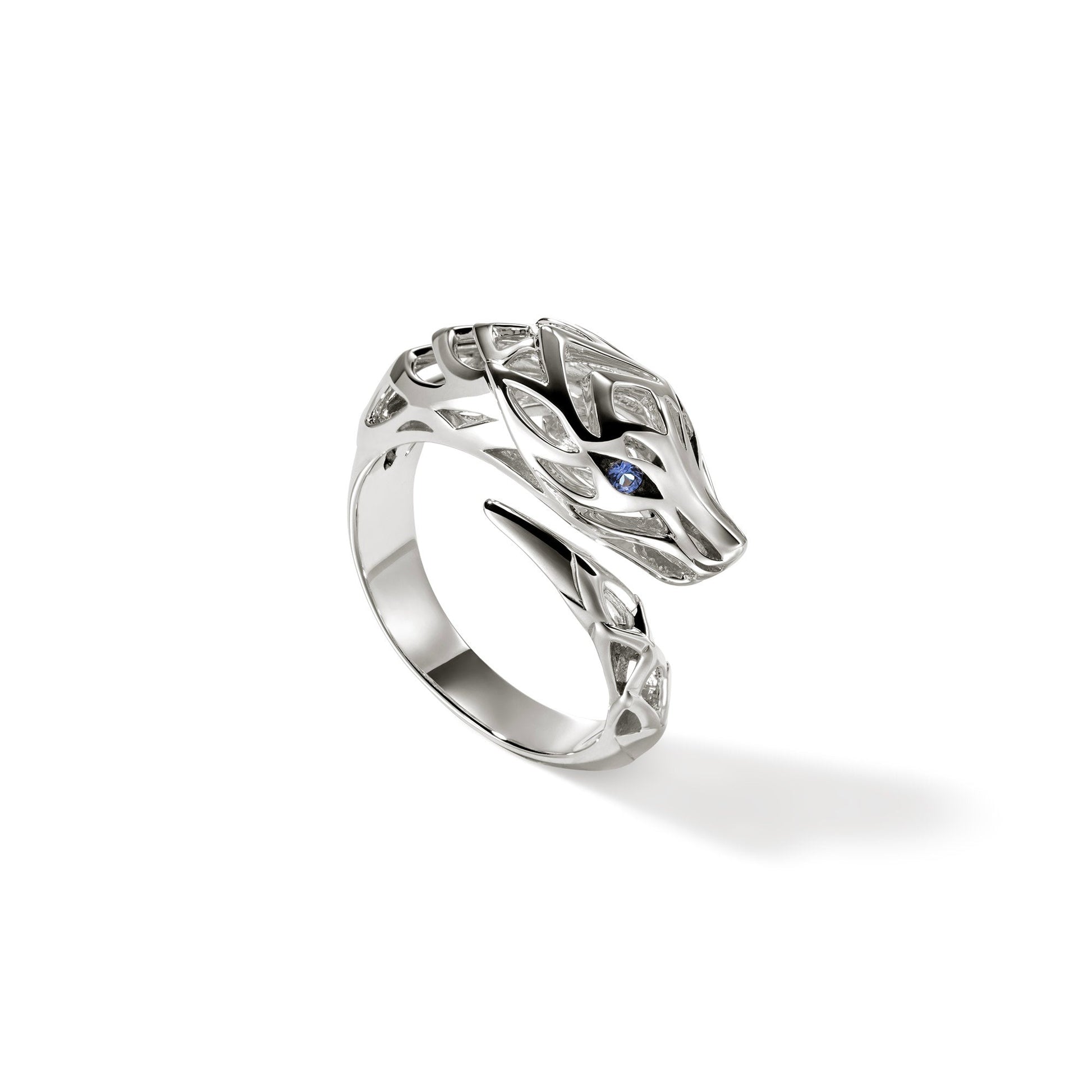 John Hardy Sterling Silver Ring Pendant Featuring Blue Sapphire Eyes On The Dragon Head