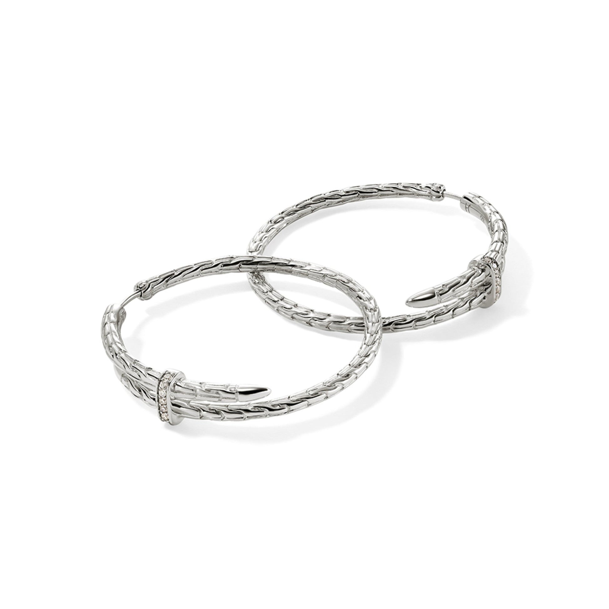 John Hardy Sterling Silver Spear Hoop Diamond Earrings
