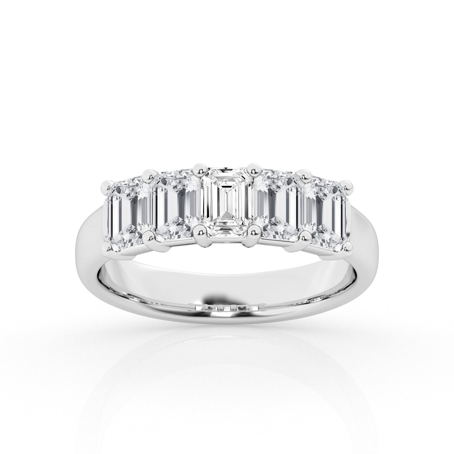 Ladies 14 Karat White Gold Laboratory Grown Diamond Anniversary Band Featuring 1.90 Total Carat Weight of Five Emerald Cut Laboratory Grown Diamonds; VS Clarity, F-G Color;