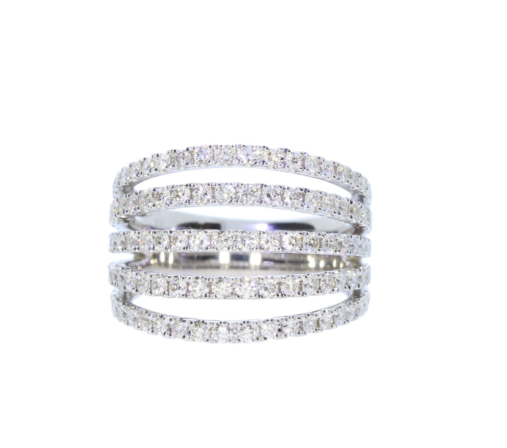 Ladies 14 Karat White Gold Fashion Ring Featuring Five Rows Set With 1.47 Carat Total Weight Round Brilliant Cut Diamonds; SI Clarity; H-I Color; Finger Size 7.0