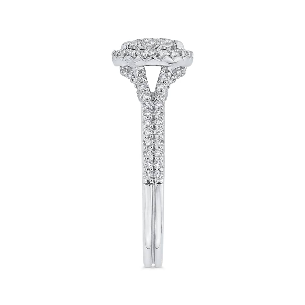 Luminous White Gold Sideways Oval Halo Engagement Ring