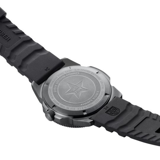 Luminox Pacific Diver Watch With A 44mm Black PVD Stainless Steel Case With A Screw In Case Back And Stainless Steel Screw Down Crown, Unidirectional Rotating Carbonox Bezel, Sapphire Crystal With Anti-Reflection Coating, Black Dial And A Black Rubber Strap; Serial Number: 3120.08090