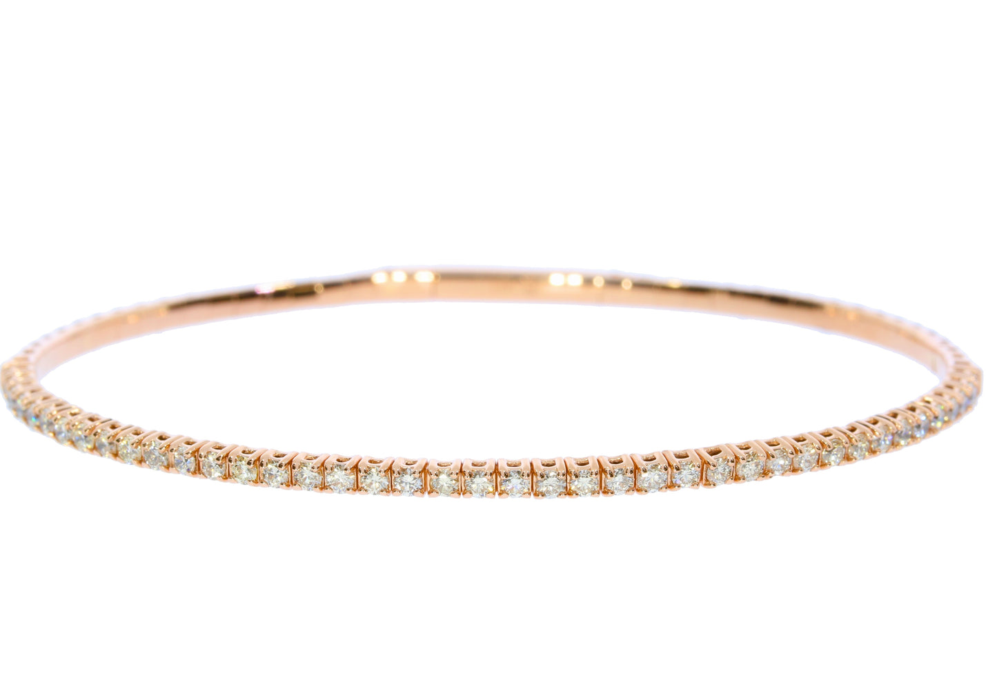 Ladies 14 Karat Rose Gold Flexible Bangle Bracelet Containing 1.00 Carat Total Weight Round Brilliant Cut Diamonds; SI Clarity; H-I Color