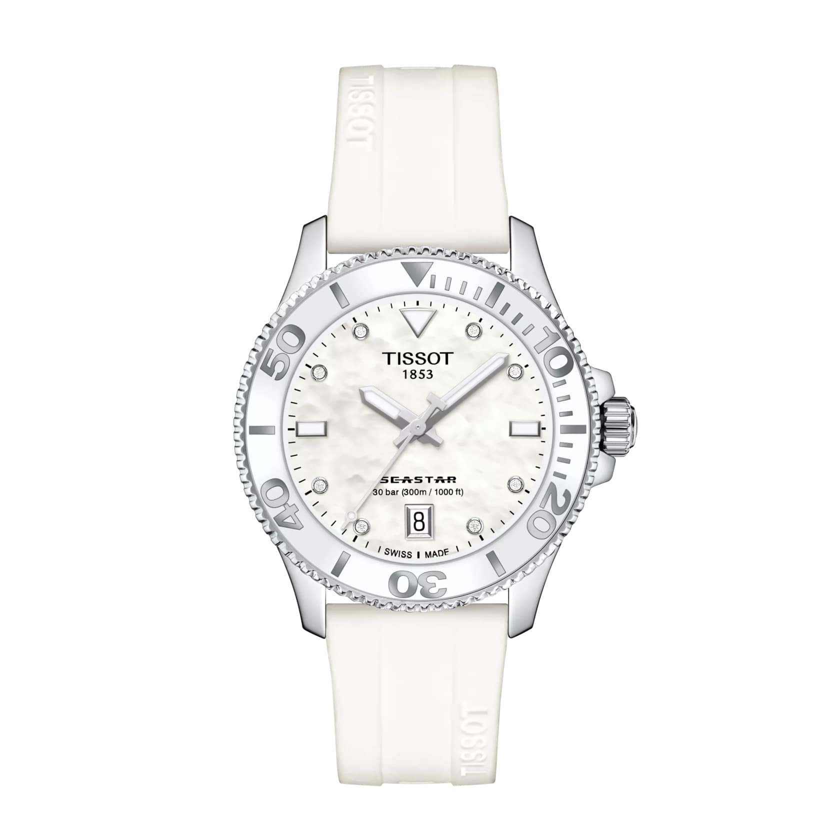 Tissot Seastar 1000 36mm T-Sport White Ceramic Bezel, Mother of Pearl and Diamond Dial, Swiss Quartz Movement; Serial Number: J5STZLKQJ
