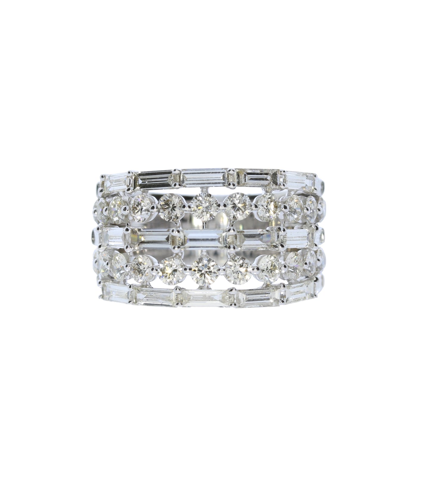 14 Karat White Gold Baguette and Round Diamond Fashion Ring Featuring 2.60 Total Carat Weight of Diamonds Finger Size: 7